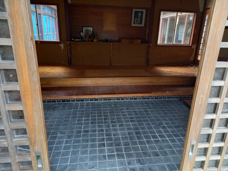 地震で割れたガラスなどを捨て、タイルを拭いて、木の部分は悔しいから全てワックス掛けました!