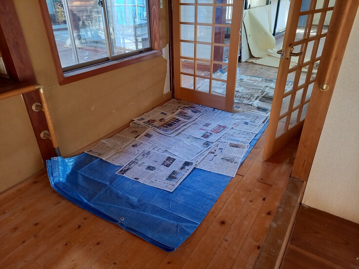 屋根が大きすぎるので、ブルーシートを張ることが出来ません。