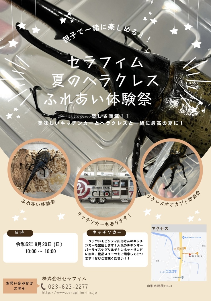 「セラフィム夏のヘラクレスふれあい体験祭」を8月20日にセラフィムで開催します。場所は以下のチラシをご確認ください。