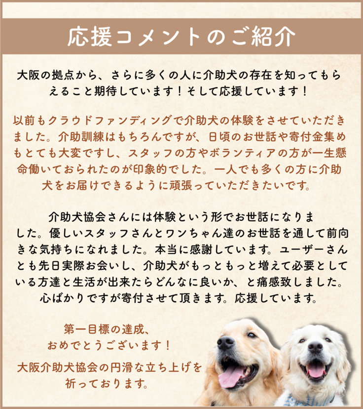 【1人でも多くの人に介助犬を届けたい!大阪での活動拠点開設にご支援を】