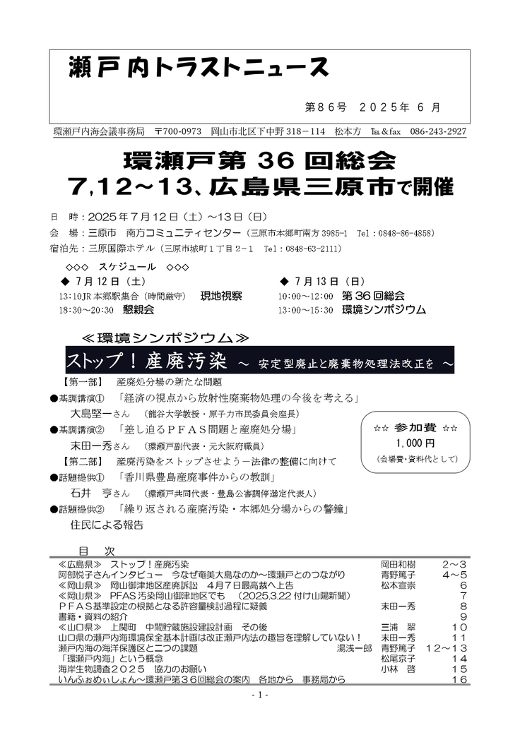 第86号では,2025年の総会と,同時に開催される環境シンポジウム「ストップ産廃汚染」について詳細を紹介しています。