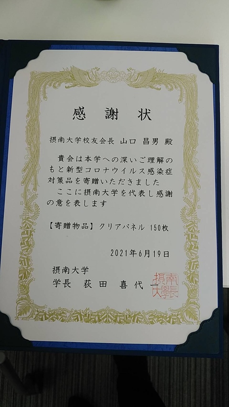 大学への2次支援予算として、残っておりました¥800,000の予算についてのご報告をいたします。大学と打ち合わせの結果クリアパネルが不足しているとの依頼があり、2021年6月19日にクリアパネルを150枚(80万円相当)寄贈いたしましたのでここにご報告申し上げます。贈呈をした当時の写真も添付しておきます。