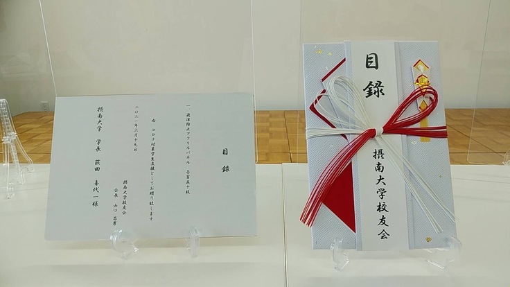 この衛生物品の手配には迅速な対応が必要であったため、クラウドファンディングの終了を前に校友会予算より一次支援として対応するため大学との打ち合わせの上必要衛生物品を購入し令和2年8月1日に寄贈させていただきました。