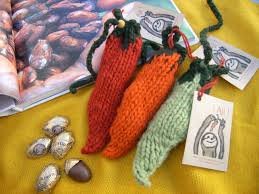 ●手編みの唐辛子ニット入りフェアトレードチョコレート(5粒入り)(1つ。色は選べません)