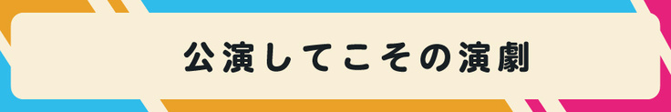 演劇の真の価値は公演です。練習とセットになることで何倍にも価値を高めることができます。あの舞台に立ちたい!練習した成果をだしたい!全力で練習してきたからこそ、舞台に立つ意味がうまれるのです。こうした経験をもとに舞台に立つことで役者は自信をつけ堂々とした姿に成長していきます。観客は演者の姿に刺激され勇気を与えられます。中には触発され新たに入団される方もいます。地道ですが公演を行うことで、演者側、観客側の輪を一人一人増やしてきました。