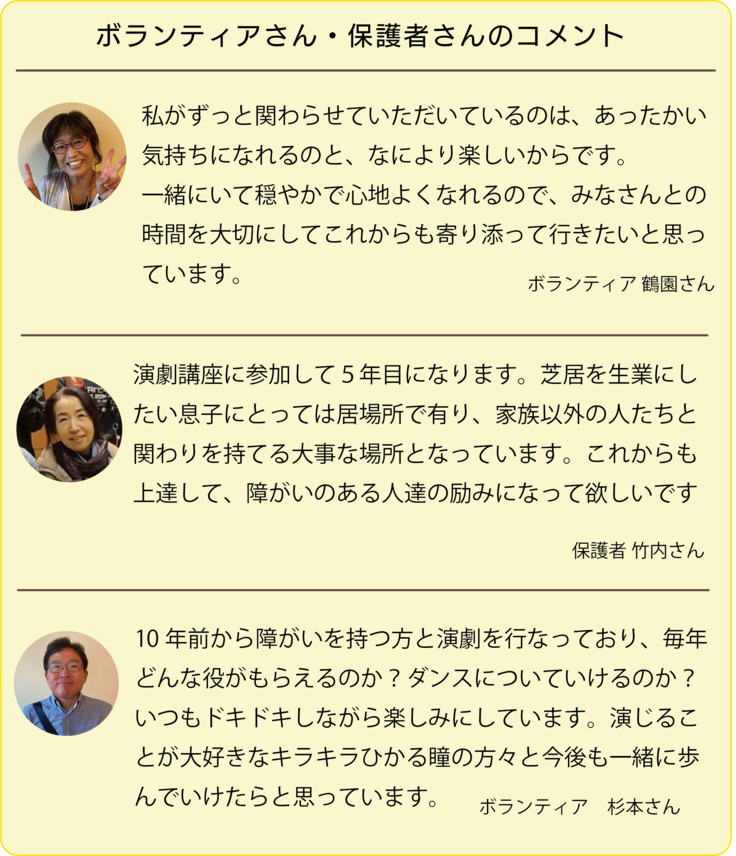 これを機に、演劇を観たことがなかった方も、障害者に関わりがなかった方も、そしてこの活動に賛同してくださる方も、皆様是非お越しください。