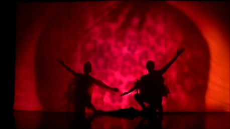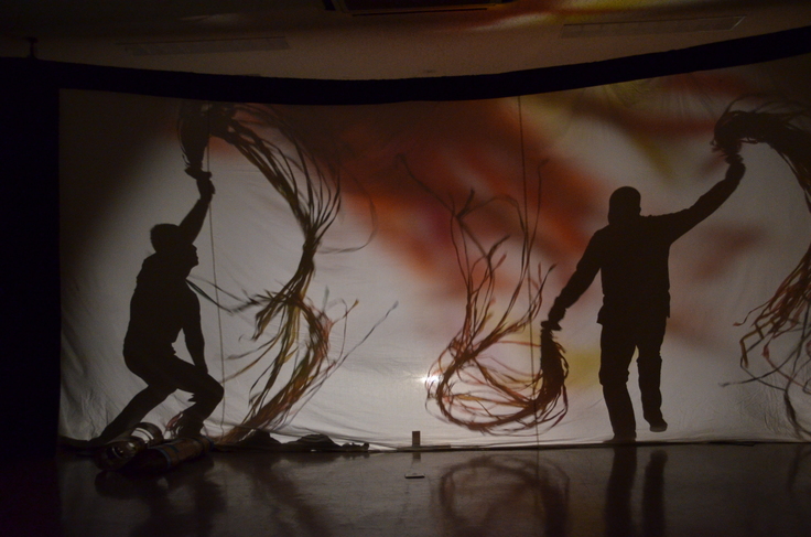 シャドゥ・シアターでは言葉ではなく、身体の動き、身体表現でスクリーンの向こう側の子供たちに様々な思いを届けています。