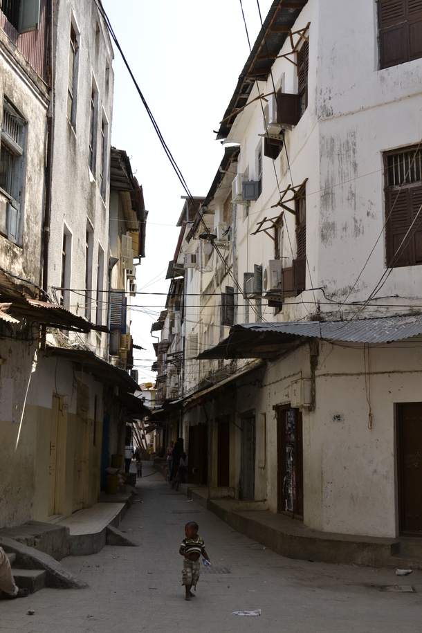 (世界遺産であるストーン・タウン。建築当時の支配層であったヨーロッパとアラブ双方からの影響を受け、3階建て以上の石造建築物が連なっています。迷路のようです。)