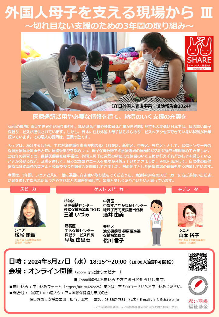活動報告会2024「外国人母子を支える現場から Ⅲ~切れ目ない支援のための3年間の取り組み~」