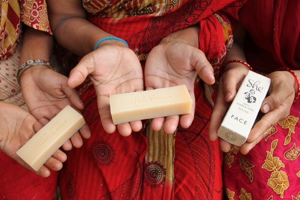 2001年にネパール政府と国連開発計画(UNDP)の小規模起業家養成プロジェクトに応募し、地元にある自然資源を活かした石けんづくりの方法を教わりました。
