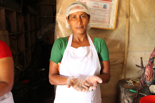 サラダさんは2年前に石けん工房に新しく入った一番若いメンバーです。サラダさんの夫は健在でネパール軍隊に所属しています。しかし、わけあって夫とは別居し、今は実家に戻っています。そして病気のお母さんの面倒を見ながら母娘二人で生活をしているそうです。家には男手がありませんから、畑仕事をしつつ、現金収入を得るために石けん作りを始めたそうです。「病気のお母さんは心配ですが、石けん作りの働き口を見つけられて安心しています」と話してくれました。