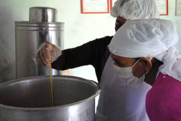 生産者の女性たちの家庭環境や状況は様々ですが、ドゥルガさんを中心に石けん工房での仕事を通じてやりがいを感じ、前向きに仕事に励む女性たちの笑顔を見ていると私も自然と笑顔をもらうことができます。