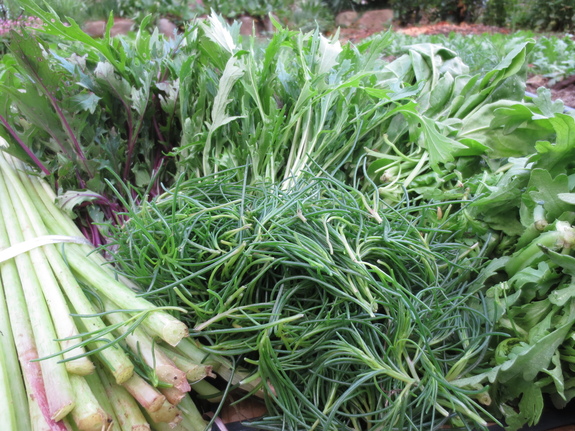 (写真)ふき、紫水菜、水菜、ほうれん草、おかひじき、サラダ春菊