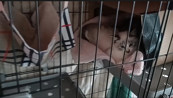 ケージを離れた場所に移動+布で覆ってましたが取り付けの物音にビクビク🙏💦