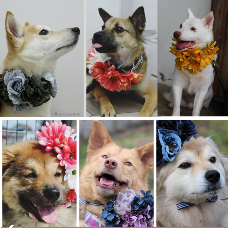 私たちが保護するワンちゃんは、野犬であったり何かトラウマを抱えた子が多くて、なんとか明るい笑顔の写真が撮れないものかと考えて、メンバーがお花の飾りを作って首につけて写真を撮ったのが始まりでした。
