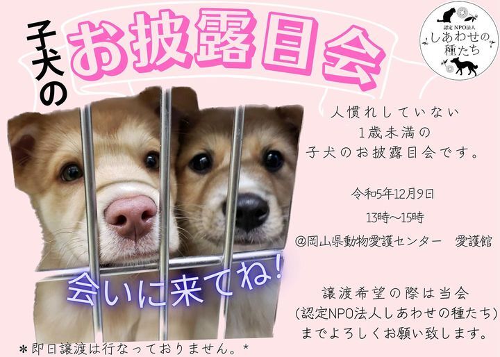 人馴れ修行中の野犬の子犬(1歳以下)お披露目会開催します!