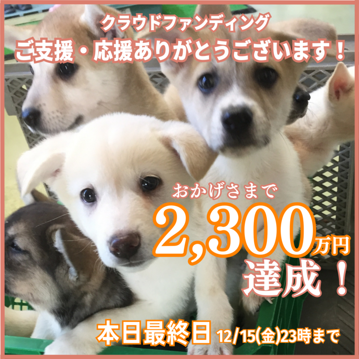 先ほど最終目標の2,300万円を達成させていただくことができました!