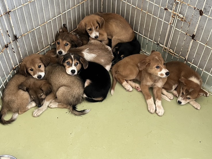 この写真の子犬たちは今までも何頭も収容されてきた野犬の子たちの仲間です。