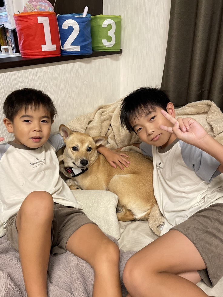 夫からOKが出る前から、omusubiという里親募集サイトを見ており、長男がぽのに一目惚れをし、「パパからOKが出たらこの子にする」と決めていました。