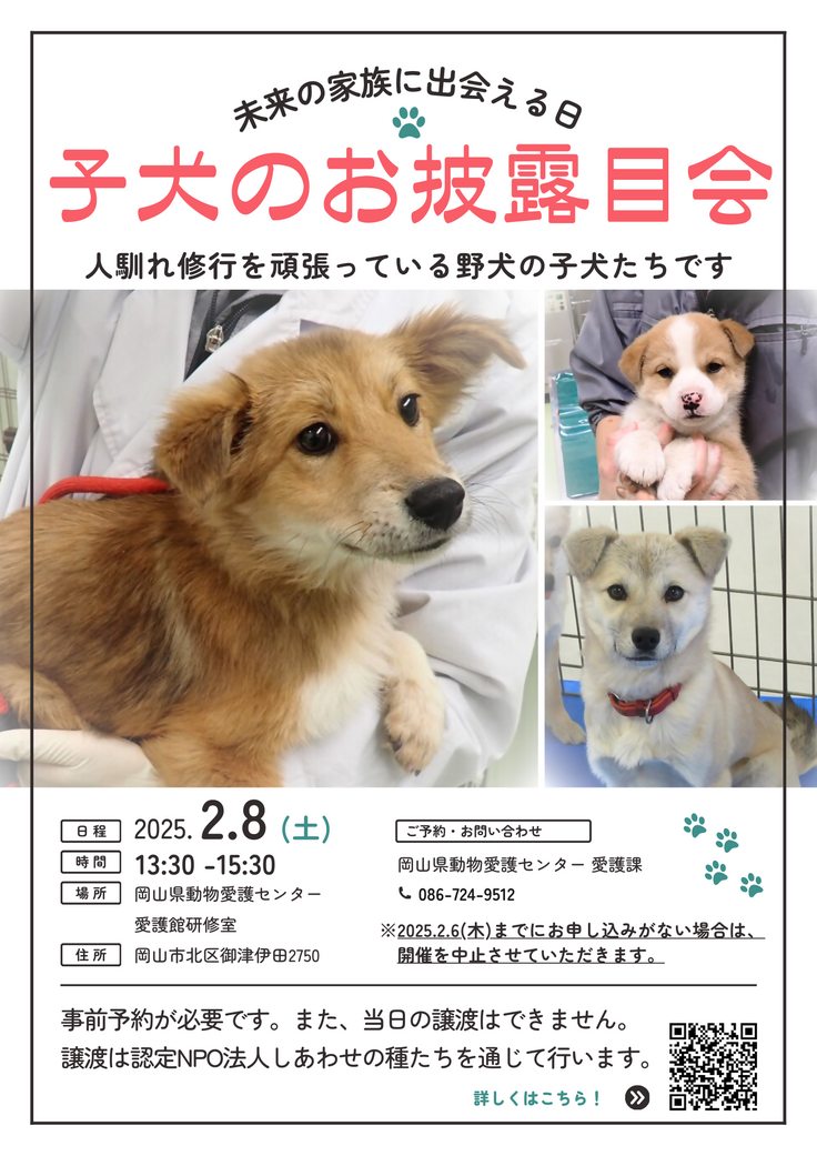 さて、本日は岡山県動物愛護センター「子犬のお披露目会」のご案内をさせて下さい。