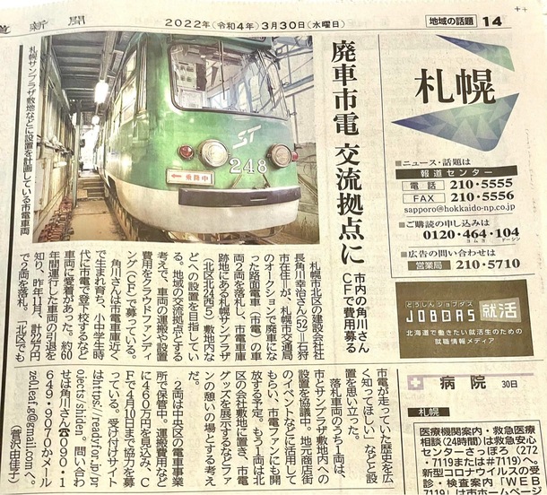 3月30日付けのの北海道新聞・札幌版に掲載されました!