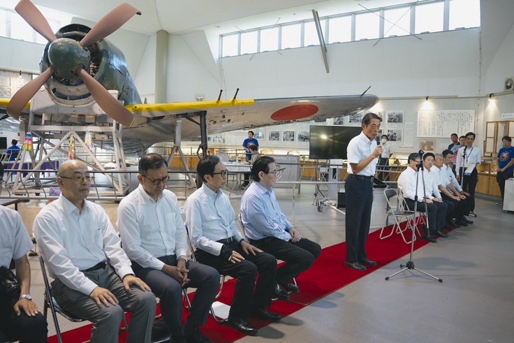 7月25日、紫電改が日本航空協会の「重要航空遺産」に認定され、日本航空協会会長を務める植木義晴氏に御来県いただき、知事が認定証を拝受いたしました。