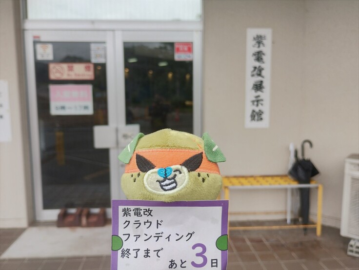 サードゴールの到達後も、日々多くのご支援をいただき心から感謝を申し上げます。本日のカウントダウン画像は、紫電改展示館前からお届けします。