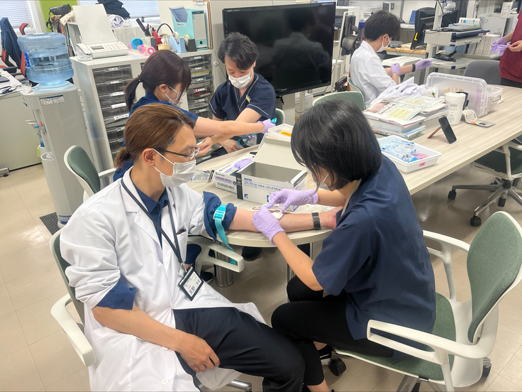 写真はT-SPOT(結核に罹患していることが分かる検査)の採血をしている医局員の図、です。