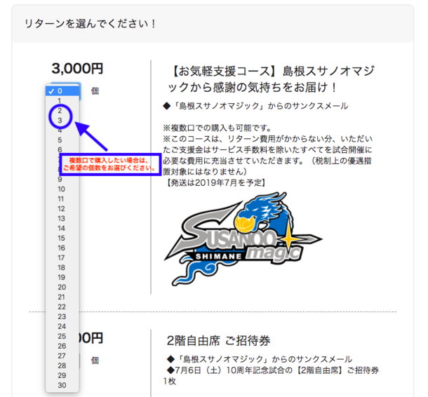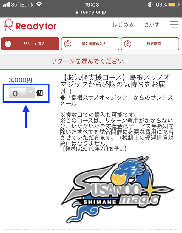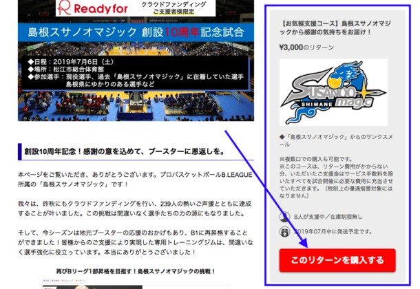 支援したい金額を選び[このリターンを購入する]をクリック