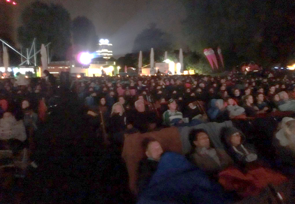 旅先でドイツ人の旧友宅を訪ねた彼は、ある日の夜、「オープンエアシネマに行こう!」と誘われました。「オープンエアシネマ?つまりドームみたいな会場で映画を観るんだろう」と想像しついていくと、着いた先はどこにでもあるような普通の公園。しかし、入口の向こうには想像もしていなかった光景が広がっていたのです。