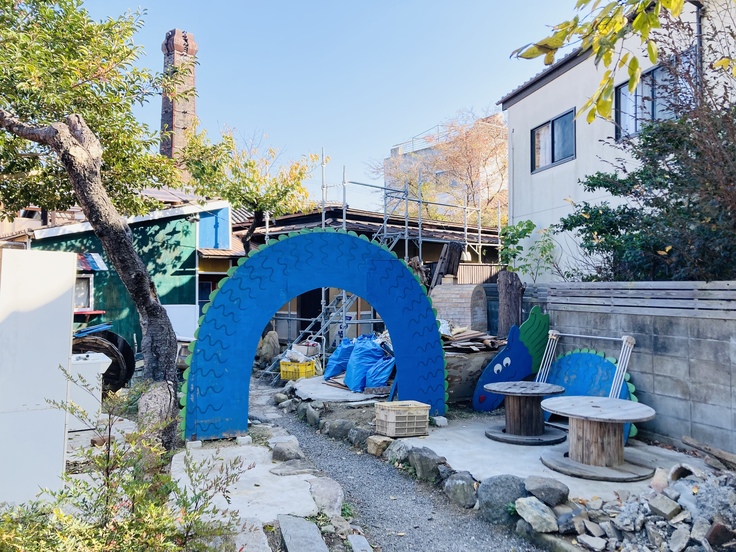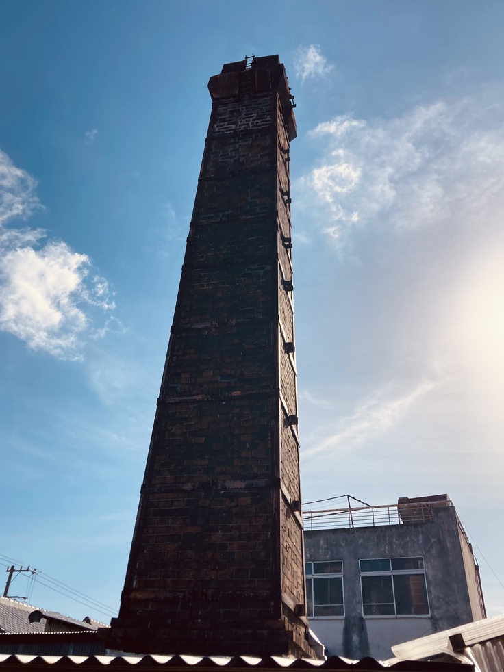 テラス整備で至近距離からレンガ煙突が見学できます。