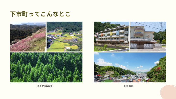 下市町の紹介をします。奈良県の真ん中くらいに位置する深い緑と清らかな川に包まれた吉野郡下市町は、古くから″吉野杉″などの林業や″割り箸″の産地として知られる自然と伝統文化が息づく町です。