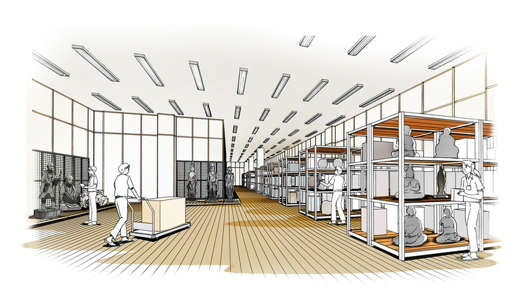 この文化財を守り伝えるべく開設する新しい琵琶湖文化館では、必要な機能の整備を第一に据えてまいります。特に文化財を収蔵、保管する収蔵庫は、良好な形で文化財を未来に伝えていくための核となる設備です。