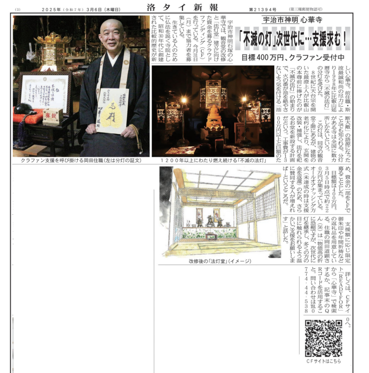 3月6日の京都府南部、山城地方をエリアとするローカル新聞「洛タイ新報」様に掲載頂きました。