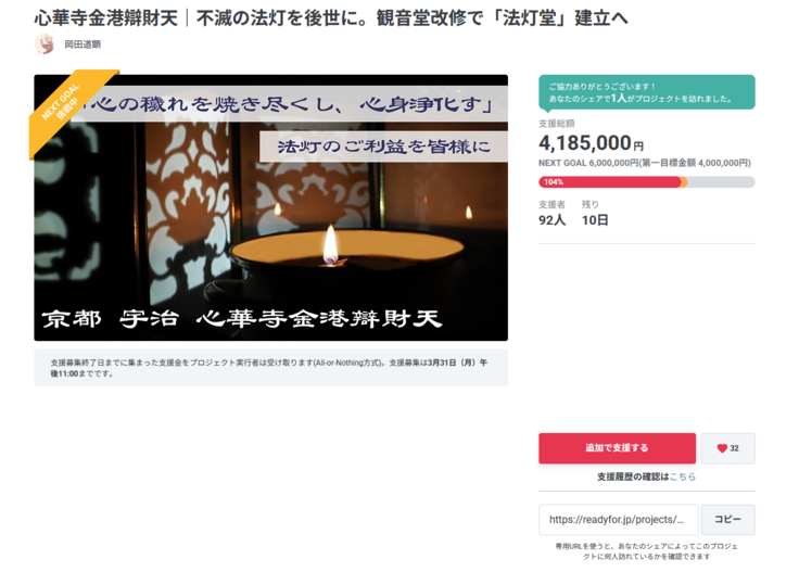心華寺クラウドファンディングにご支援をいただき、誠にありがとうございます。