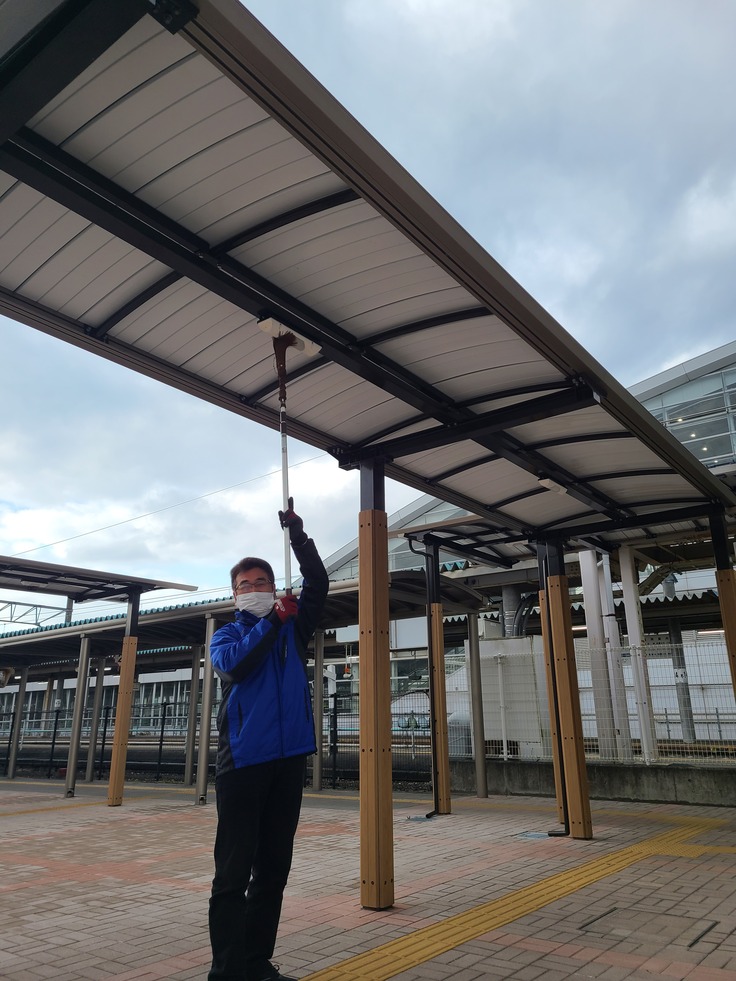 11月7日にはIGRいわて銀河鉄道二戸駅さん、JRバス東北二戸支店さん合同で春から夏にかけて増えてしまったくもの巣を払う清掃作業を行いイルミネーション取り付け前の準備を行いました。