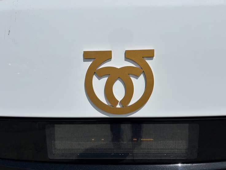 現行車両では鳩のマークの社章はステッカーですが、今回は旧社章のエンブレムを別で作成し、立体感のある仕上がりになっています。