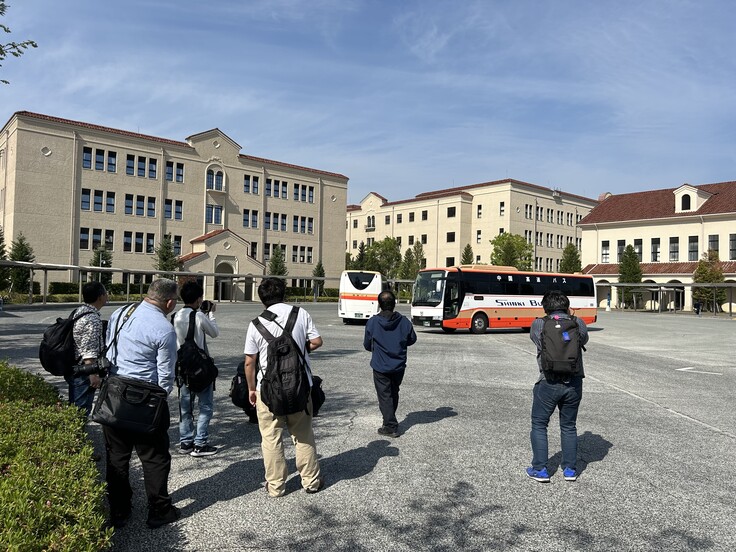 また、神姫バスが日頃、三宮・大阪からの通学バスを運行させていただいております関西学院大学様のご協力もあり、関西学院大学神戸三田キャンパスの広大なバスロータリーの中で、復刻塗装車両の撮影もさせていただくことができました。(関西学院大学様、誠にありがとうございました。)