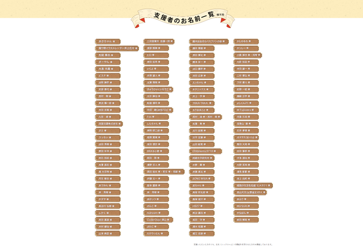 今回のクラウドファンディングにご支援いただいた方で、御礼ページへのお名前の記載を希望された方のお名前もページ内に掲載しておりますので、是非ご覧ください。