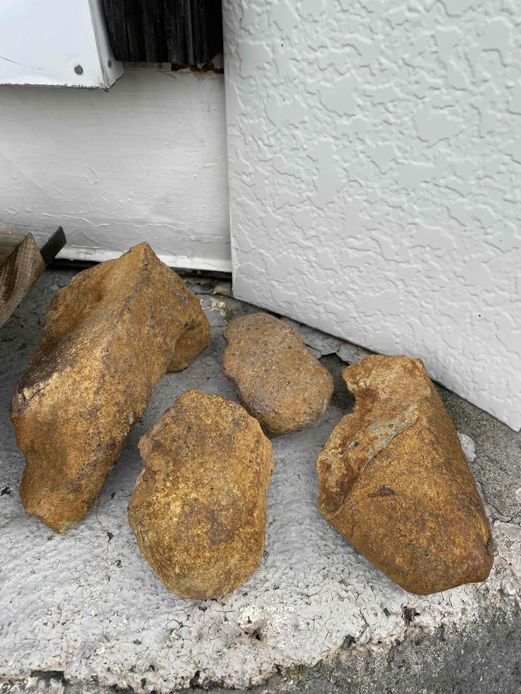 例年になく豊作で、土を赤土の深さまで掘ったところ、下記のような縄文時代の石器と推定されるものが多数でてきました。