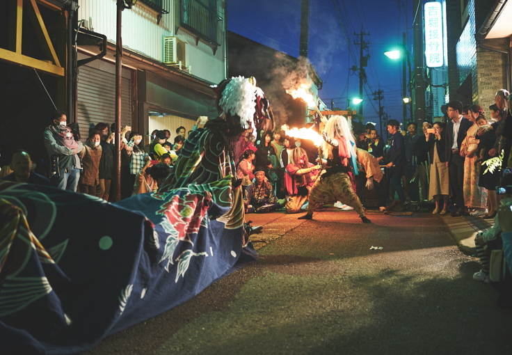 荒々しく炎と共に踊り戦いあう天狗と獅子、エンターテイメント性の高い様々な演目は他にない見応えをもっています。そこには、町の人々の祈りや願い、先祖代々受け継がれてきた想いが染み込んでいます。
