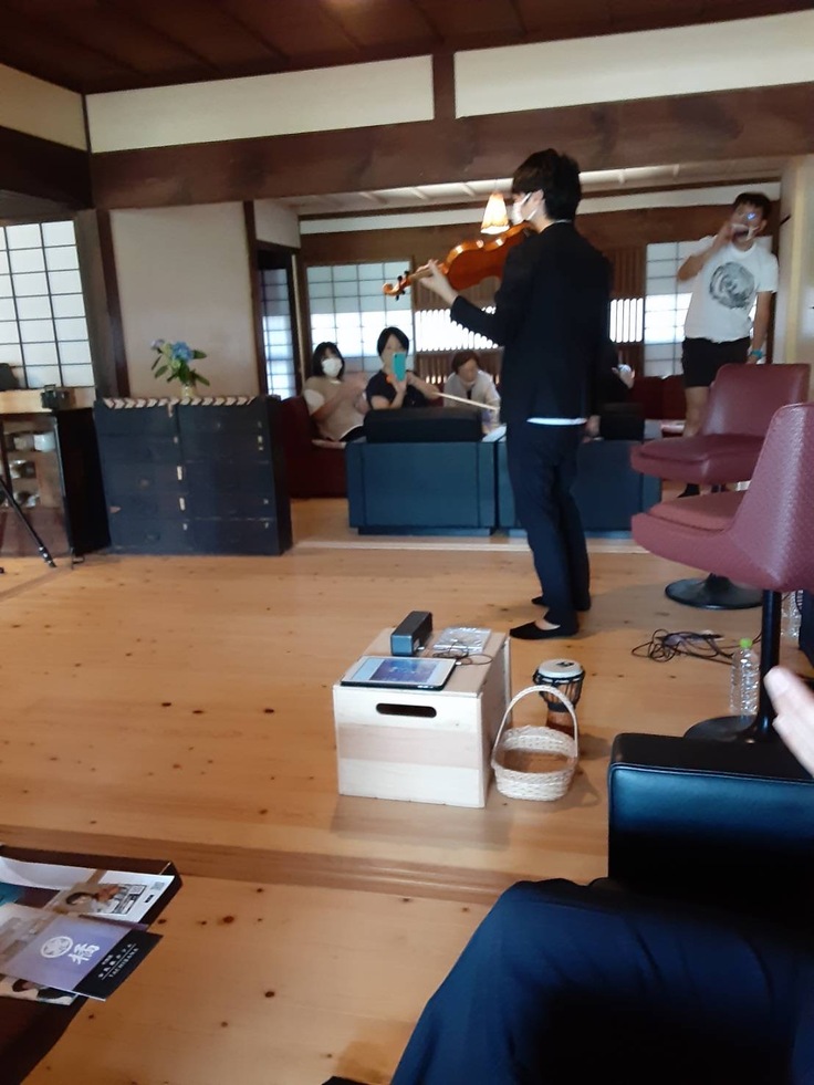 お越しいただいた皆様には、「とても過ごしやすい」「気持ちの良い空間だね」と高い評価をいただいています。プレイベントではバイオリンの音が響き渡りました。