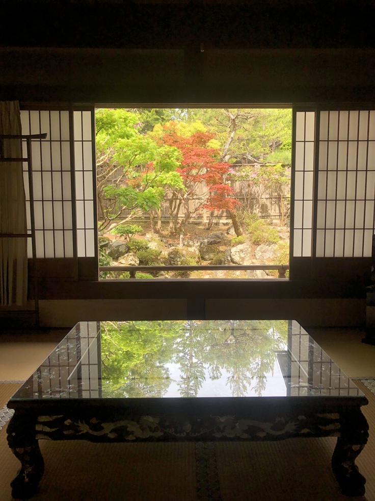 稚児の間という部屋で、築350年の襖仕切りの個室になっており、障子の窓を開けて頂きますと