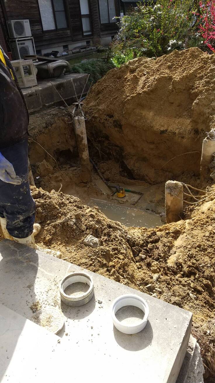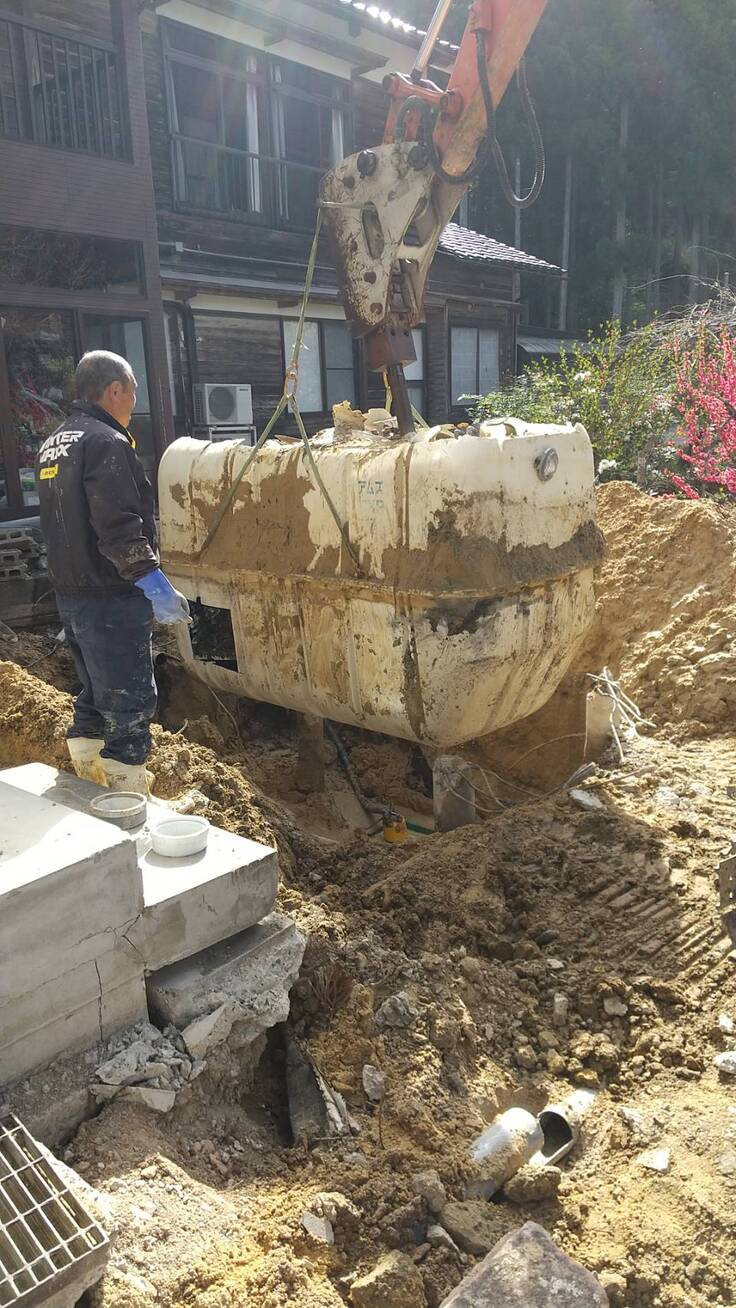 天王寺、浄化槽の入れ替え作業中の様子です。