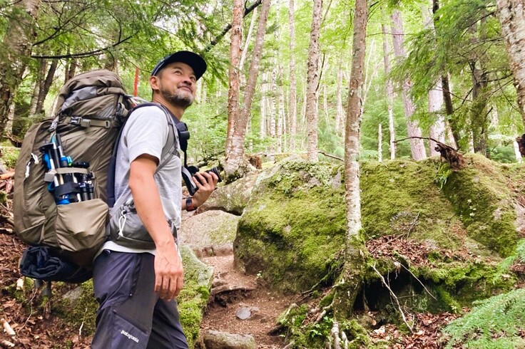 日本各地の聖山霊峰を歩いています。暮らしと関わりの深い低山や里山がメインフィールドで、信仰や文化産業の発展に寄与した古道・街道もよく歩きます。とくに熊野古道は、ぼくにとってライフワークそのもの。この道、この土地に、なにか特別なものを感じるんですよね。その熊野古道、ぼくは毎年どこかしらのセクションを歩いていますが、やはり中辺路が熊野詣での“基本”です。同じ道をたびたび歩くことで自分の成長具合を確かめることができるし、森の中を長く歩くことによって身心が整っていく気がします。