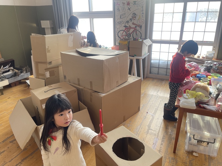 *施設見学会で実施した遊び場/廃材でものづくりを楽しむ子ども達(2025年2月)