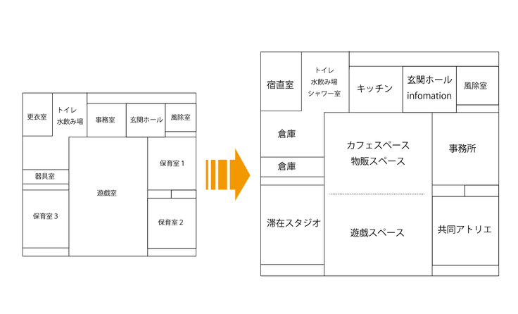 shippleは、もともと保育所でしたので当然ここには周辺地域の特定の子ども達が通っていましたが、少子化の影響で保育所としての役割を果たせなくなってしまいました。