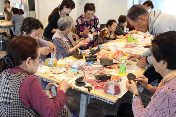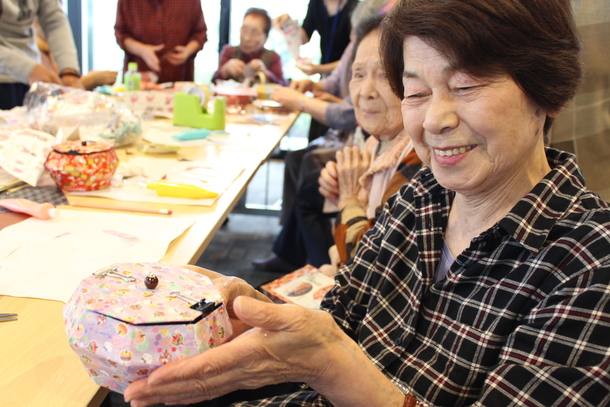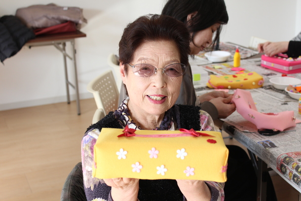 また、このコミュニティの活動以外に、復興公営住宅に住む高齢者を対象にした「手作りワークショップ」を開催しています。誰でも簡単に製作できるものを中心に、毎回テーマを決め、みんなで楽しくワークショップを開催しています。