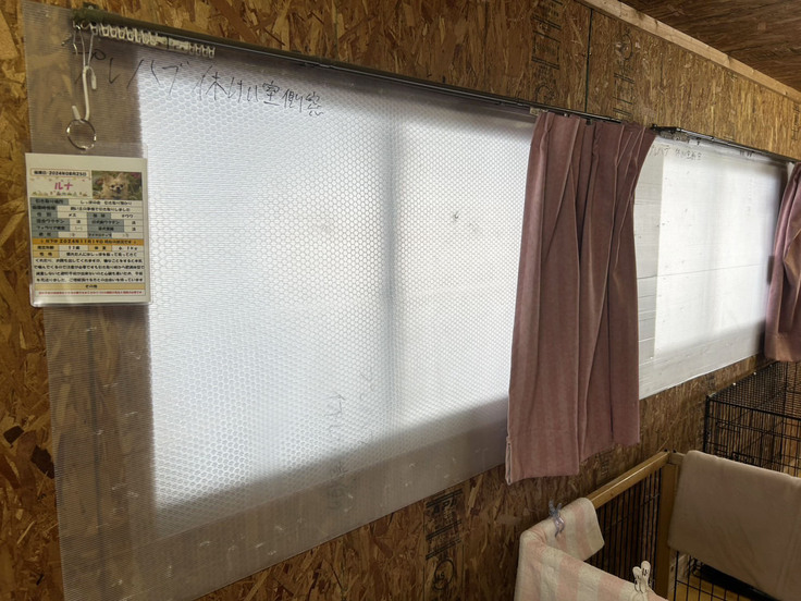 ① プレハブ犬舎内にある複数の窓二重窓にする