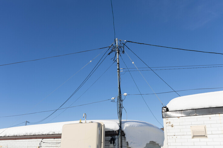 そのため、↑の写真のように電気の配線や電話の配線などが放射線状に張りめぐりました。